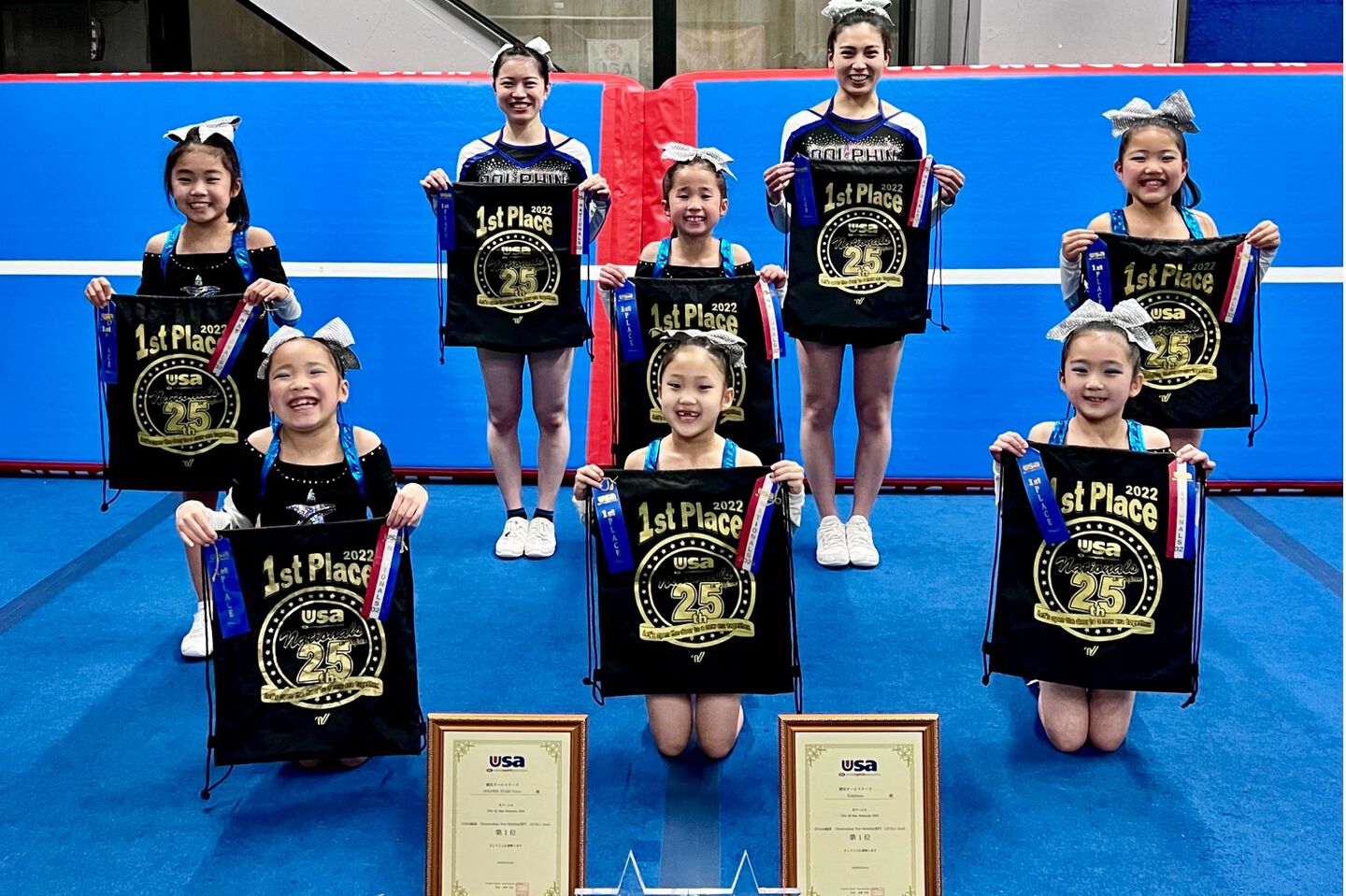 おかげさまで、2021-22シーズンは、「USA Regionals 2022(地区予選大会)」初出場で「USA Nationals2022(全国選手権大会)」出場を果たし、Open編成 Cheerleading Non-Building部門 LEVEL2 Smallで優勝することができました!